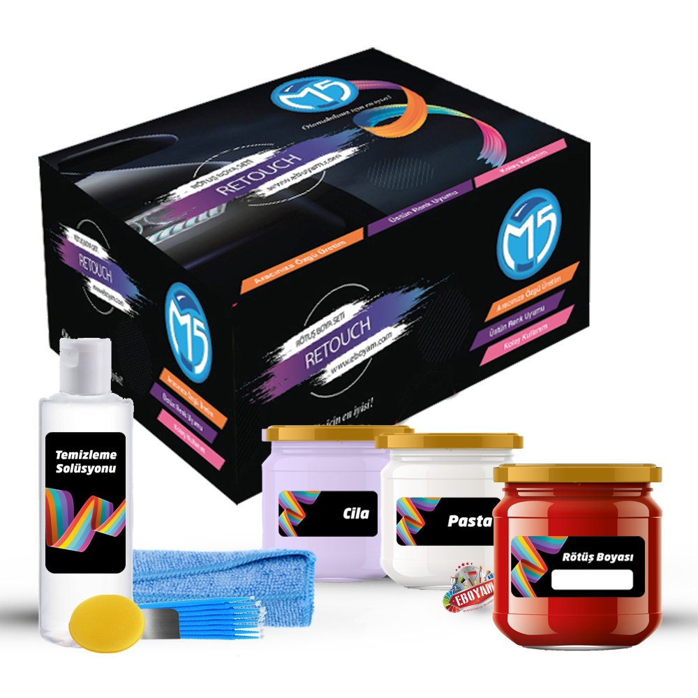 M5 Retouch'ın her marka ve modele göre aracınıza özel rengi bulunmaktadır. Rötuş seti içerisinde bulunan özel renk kodlu rötuş boyası, Profesyonel detaycıların kullandığı özel M700 temizleme solüsyonu, Türkiye en çok tercih edilen Farecla Pasta,özel cila ve rötuş yaparken kullanacağınız gerekli malzemeler uygulamanızın kusursuz olmasına olanak veriyor.